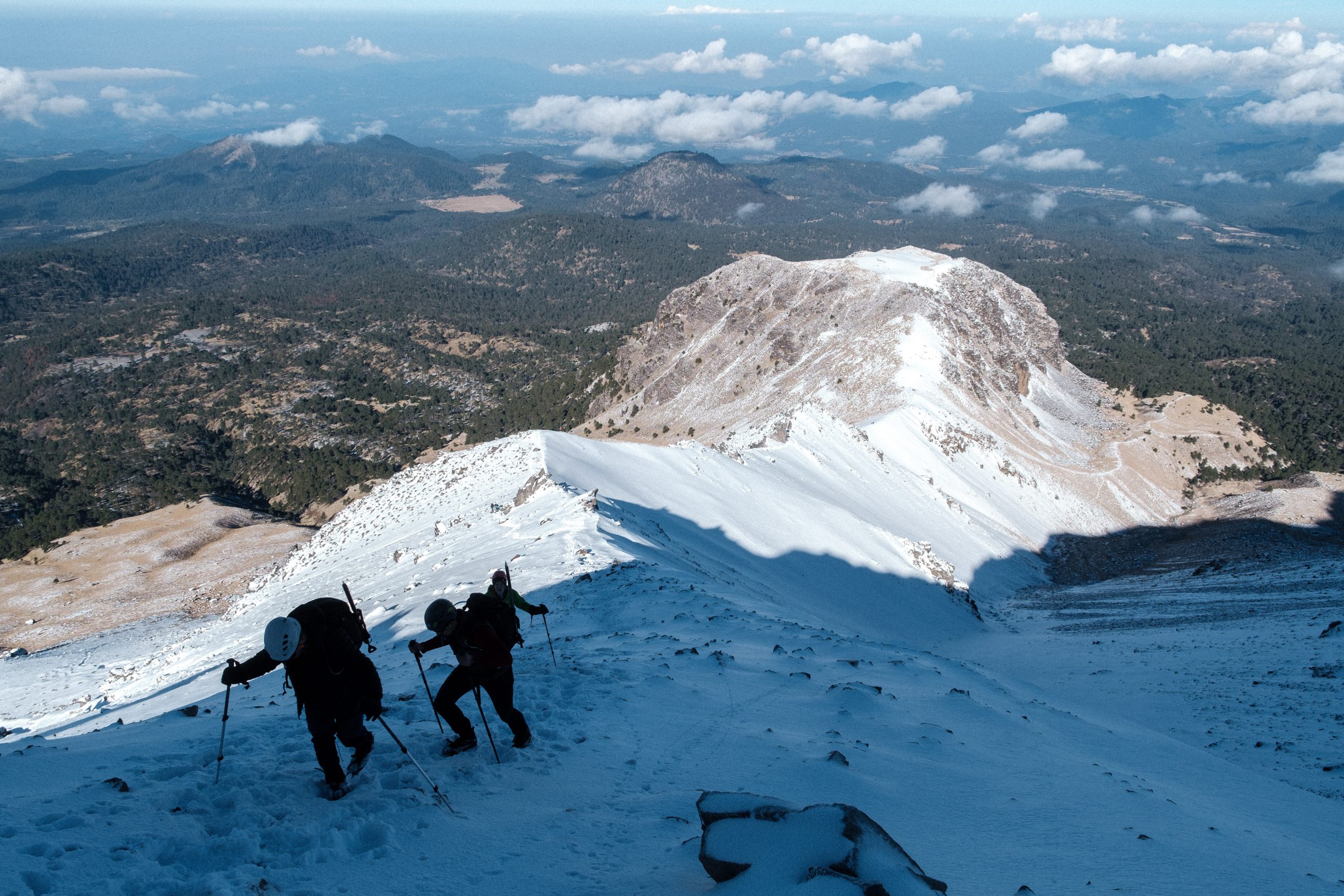 November to February is typically considered the best time of year to hike in Mexico since the weather is typically clearer and there is less of precipitation, significant amounts of which would make this hike much more challenging. We did this trip on February 21st and 22nd. On the first day we hiked up to camp and we saw that there was very little snow left on the rim. However, the night before our ascent the mountain received quite a bit of fresh snowfall. In other words, expect the unexpected and come prepared! We would not recommend doing this hike without crampons or at least microscopes and an ice axe if there is snow.
