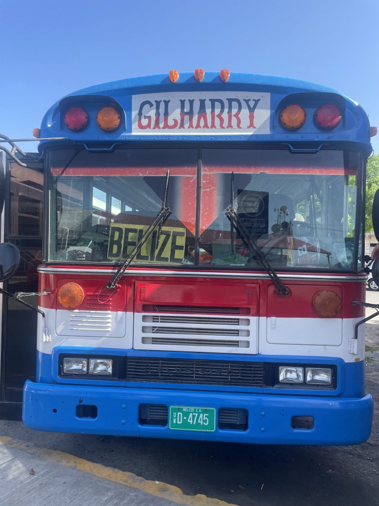 If you started your trip in Mexico, this is most likely going to be your introduction to “chicken busses”. They are old refurbished school busses used for public transport. They can be really crowded, sweaty, and slow (or way too fast) but they will get you to your destination for a ridiculously low price. The ride costs 250 pesos all the way from Chetumal to Belize City. The bus will wait for you at the border as you go through the immigration process.